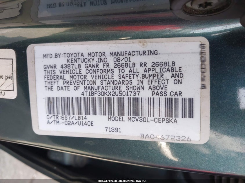 • 4T1BF30KX2U501737