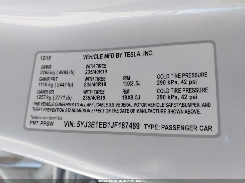 • 5YJ3E1EB1JF187489