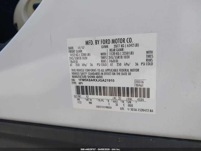 • 1FM5K8ARXJGA21910