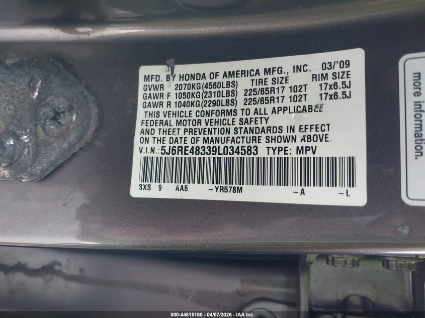 2009 HONDA CR-V LX for Sale in Ashland, VA