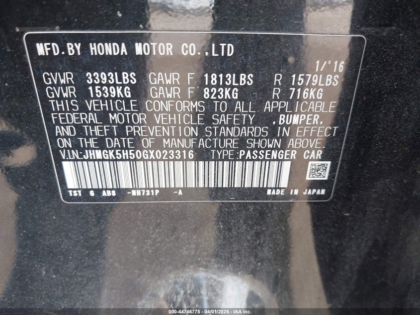 • JHMGK5H50GX023316