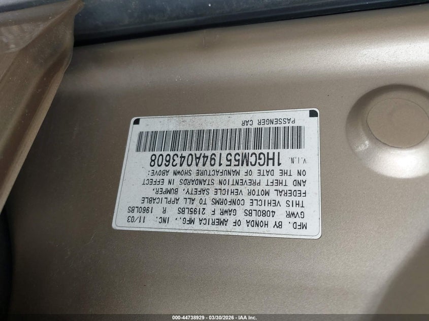 • 1HGCM55194A043608