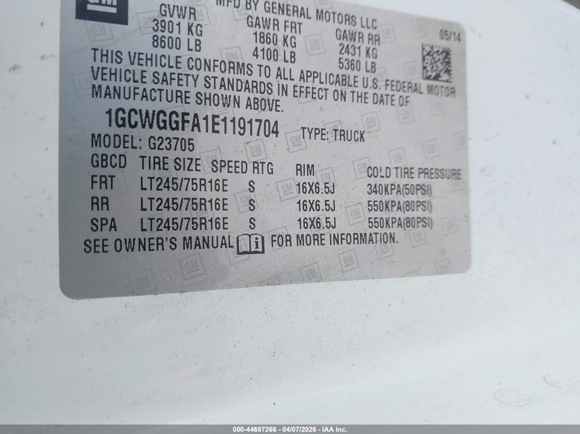 • 1GCWGGFA1E1191704