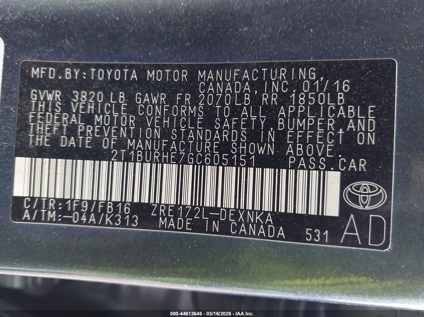 • 2T1BURHE7GC605151