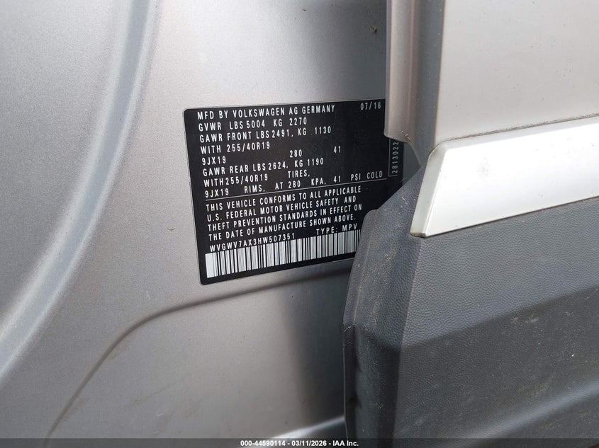 • WVGWV7AX3HW507351