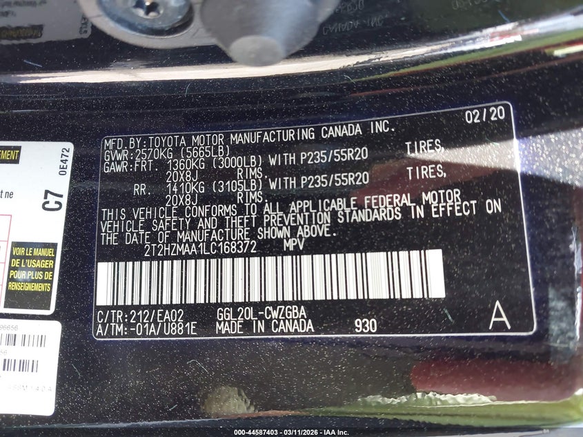 • 2T2HZMAA1LC168372