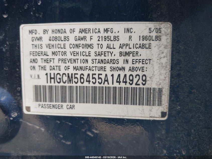 • 1HGCM56455A144929