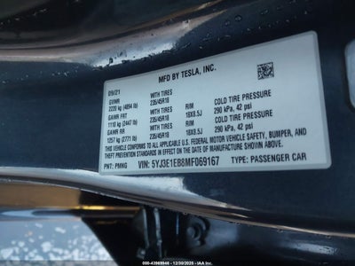2021 TESLA MODEL 3 LONG RANGE DUAL MOTOR ALL-WHEEL DRIVE for Sale in Electric Vehicle Auctions, None