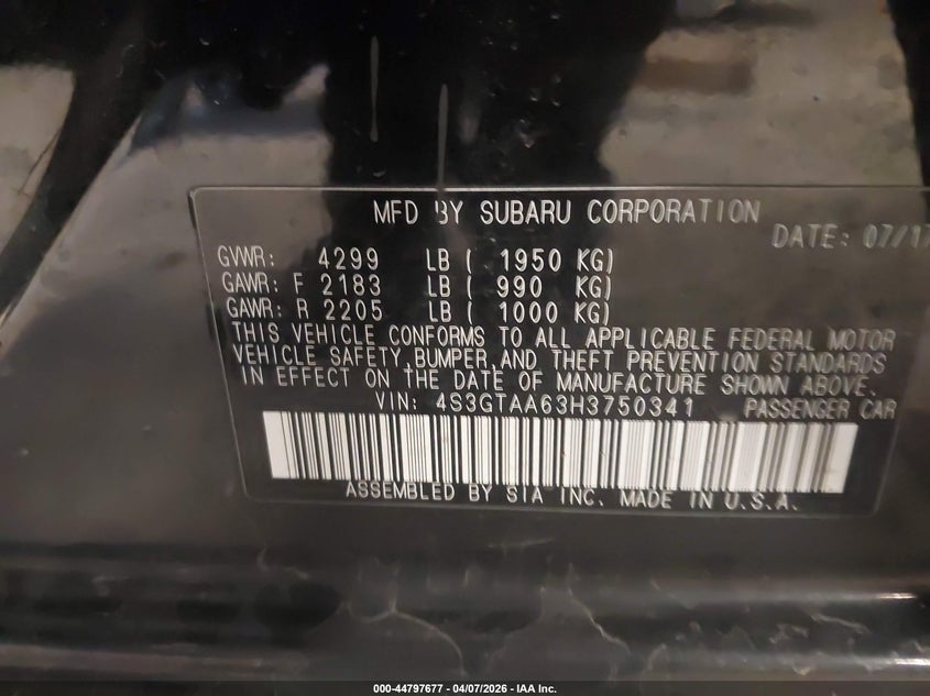 • 4S3GTAA63H3750341