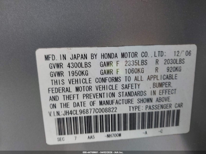 • JH4CL96877C008822