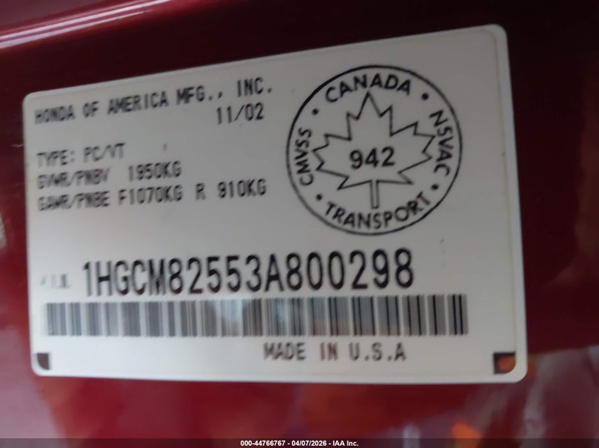 • 1HGCM82553A800298