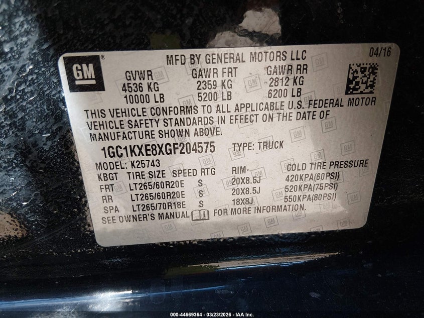 • 1GC1KXE8XGF204575