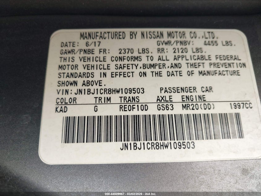 • JN1BJ1CR8HW109503