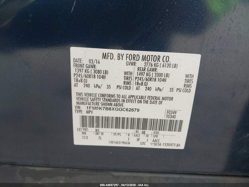 • 1FM5K7B8XGGC62679