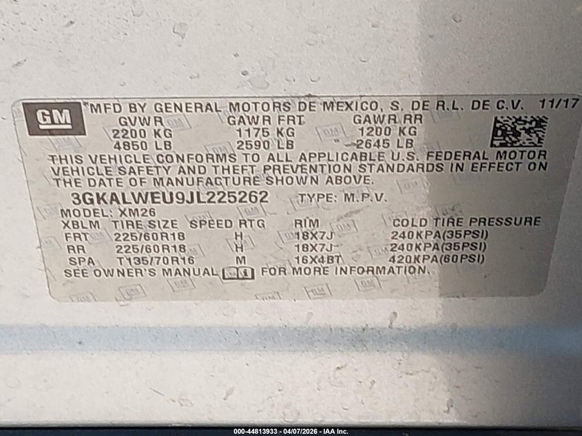 • 3GKALWEU9JL225262