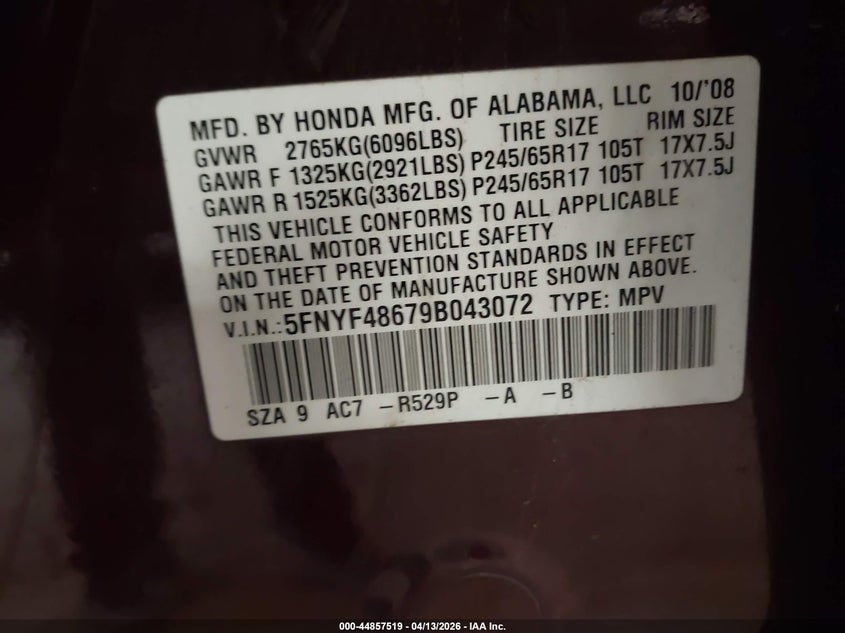 • 5FNYF48679B043072