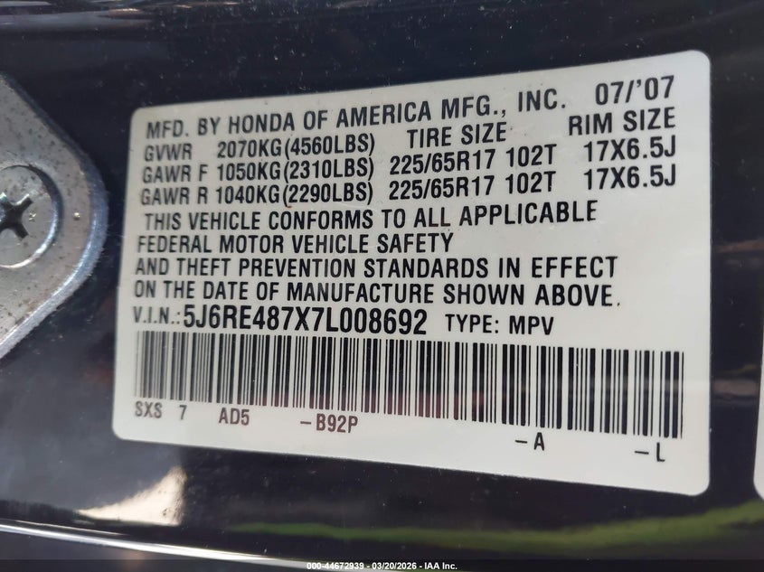 • 5J6RE487X7L008692