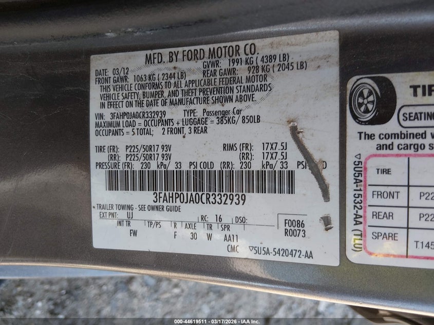 • 3FAHP0JA0CR332939