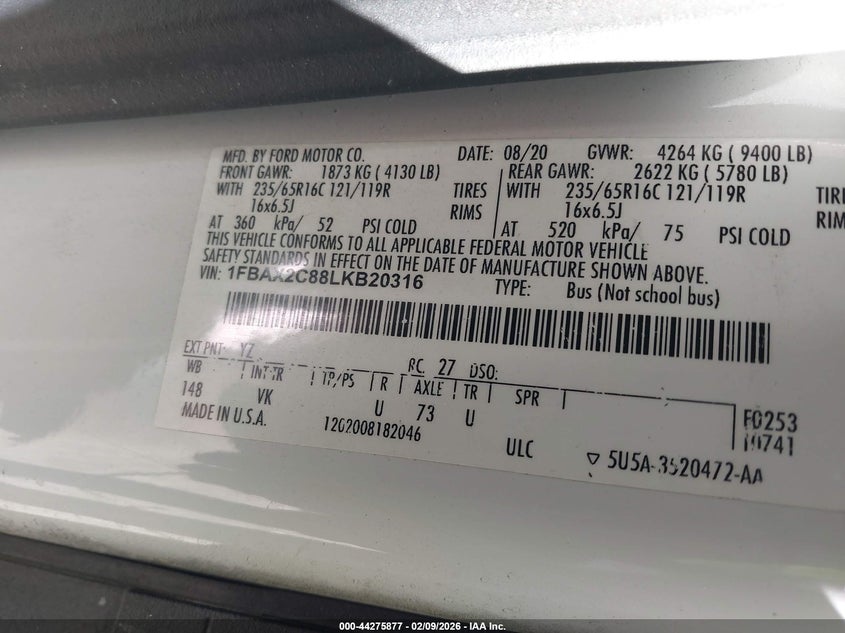 • 1FBAX2C88LKB20316