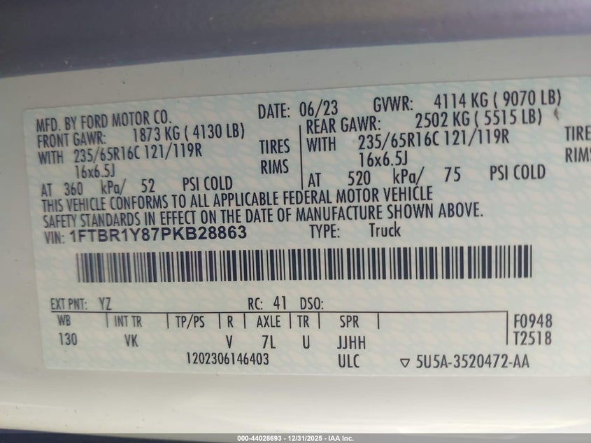 • 1FTBR1Y87PKB28863