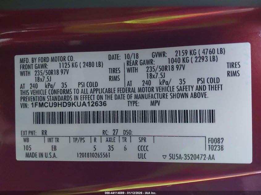 • 1FMCU9HD9KUA12636