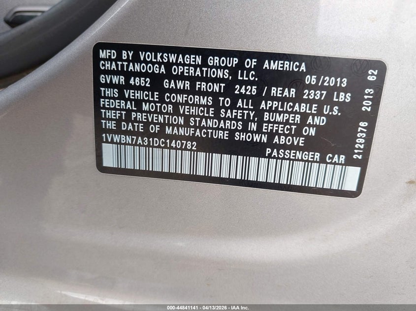 • 1VWBN7A31DC140782