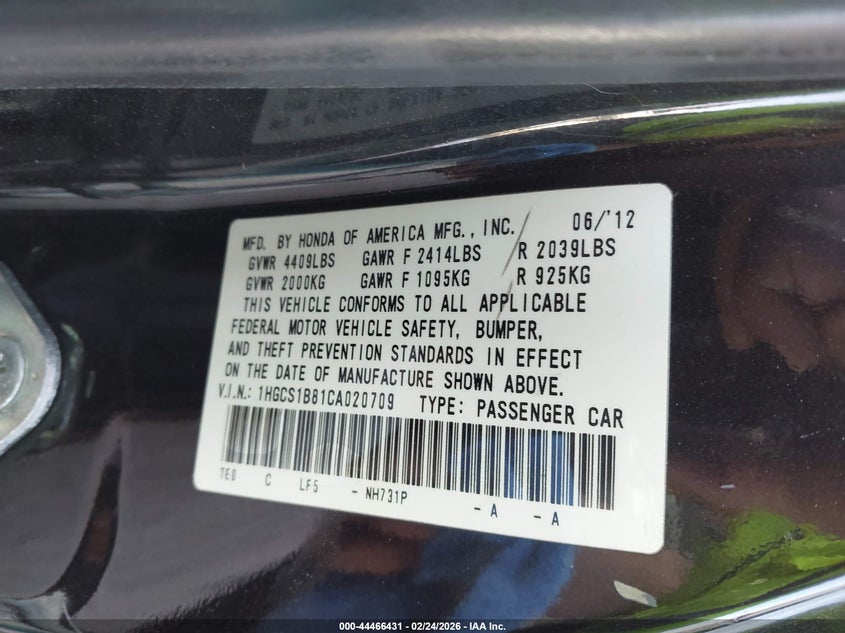 • 1HGCS1B81CA020709