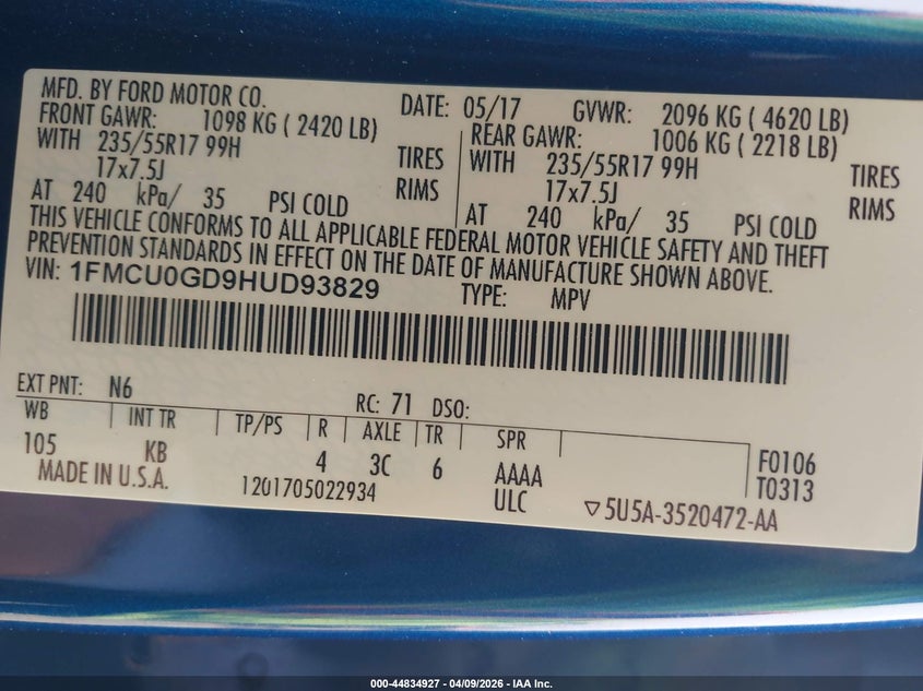 • 1FMCU0GD9HUD93829