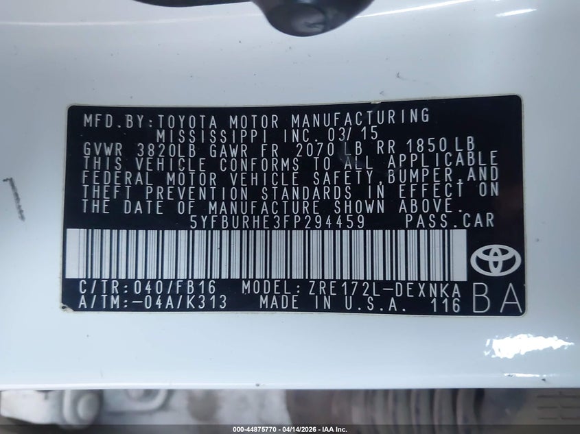 • 5YFBURHE3FP294459