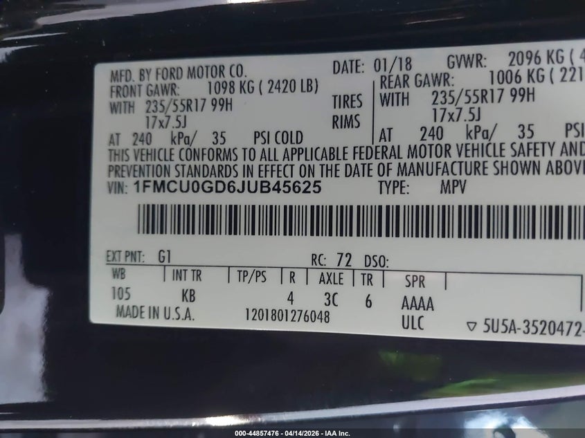 • 1FMCU0GD6JUB45625