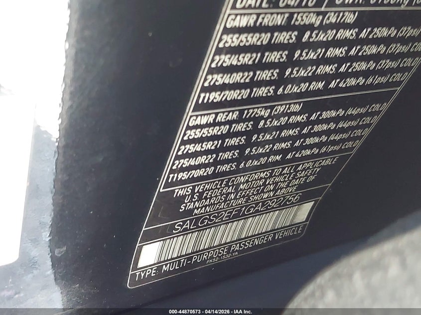 • SALGS2EF1GA292756
