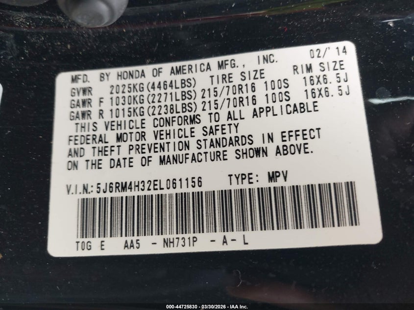 • 5J6RM4H32EL061156