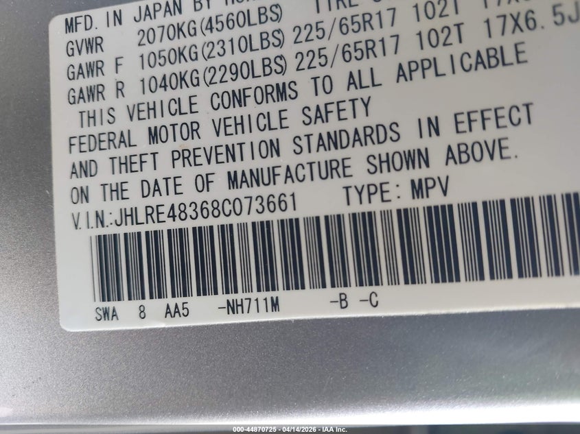 • JHLRE48368C073661