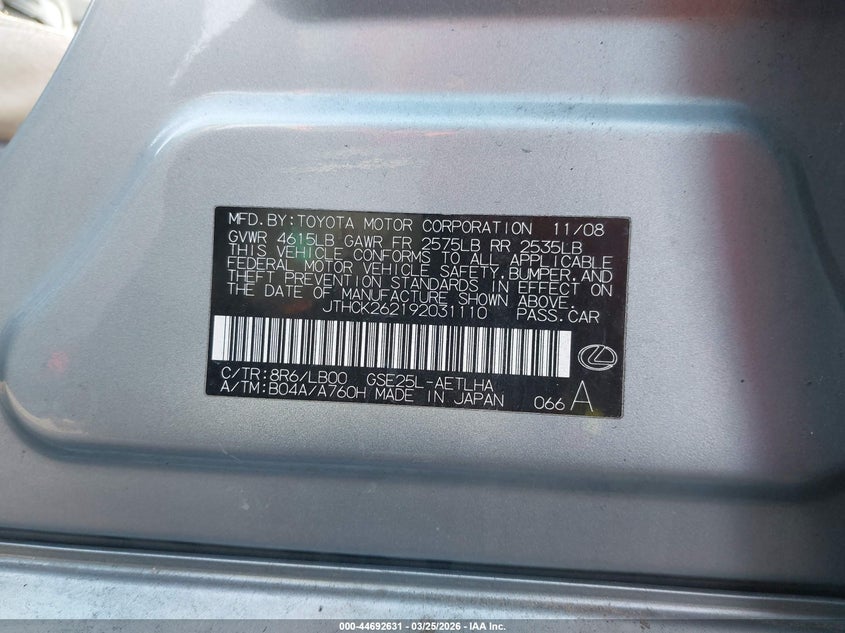 • JTHCK262192031110