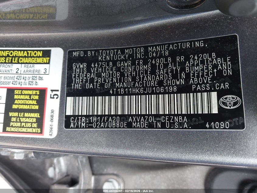 • 4T1B11HK6JU106198