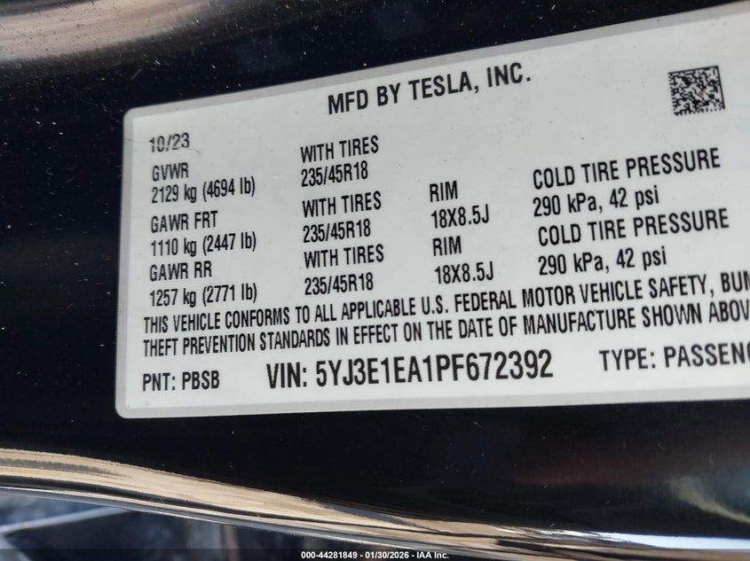 • 5YJ3E1EA1PF672392