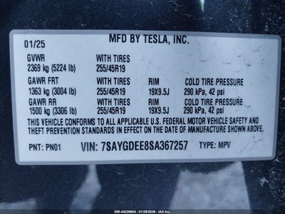 2025 TESLA MODEL Y LONG RANGE DUAL MOTOR ALL-WHEEL DRIVE for Sale in Electric Vehicle Auctions, None