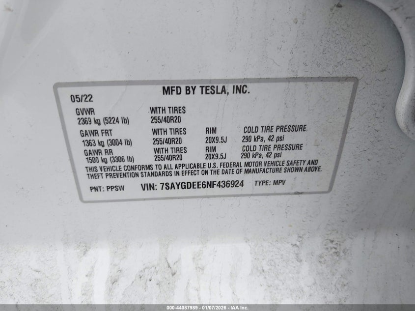 2022 TESLA MODEL Y LONG RANGE DUAL MOTOR ALL-WHEEL DRIVE for Sale in Electric Vehicle Auctions, None