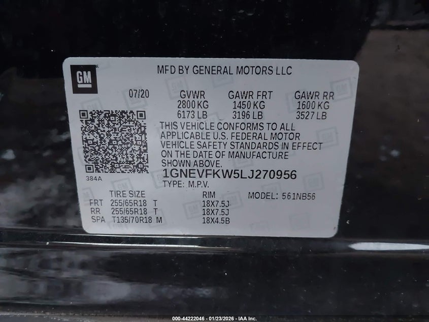 • 1GNEVFKW5LJ270956