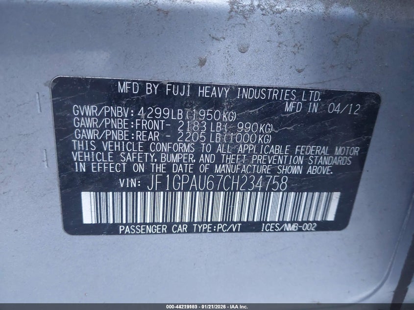 2012 SUBARU IMPREZA 2.0I SPORT LIMITED for Sale in Templeton, MA