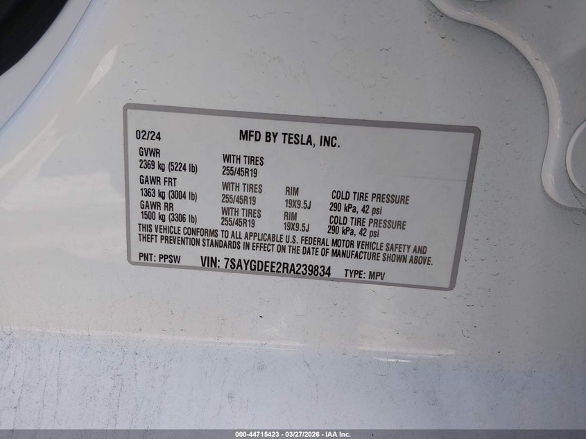 2024 TESLA MODEL Y LONG RANGE DUAL MOTOR ALL-WHEEL DRIVE for Sale in Electric Vehicle Auctions, None