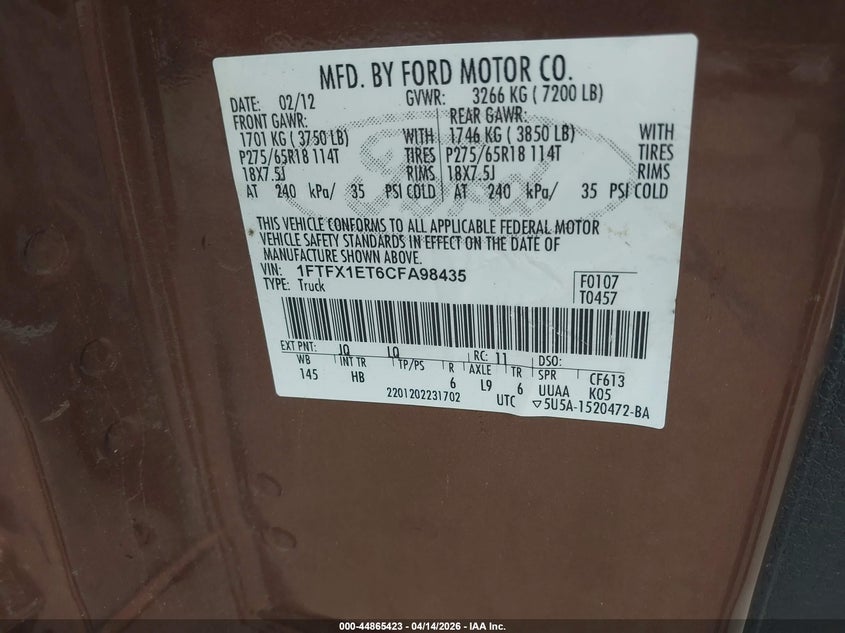 • 1FTFX1ET6CFA98435