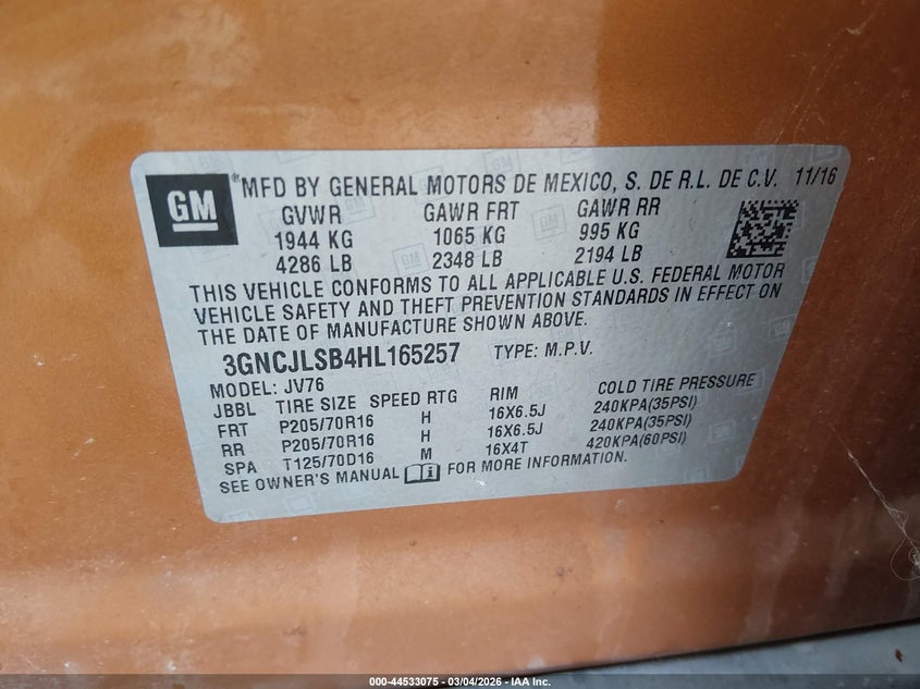 • 3GNCJLSB4HL165257