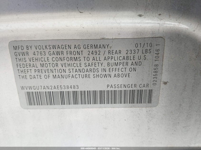 • WVWGU7AN2AE538483