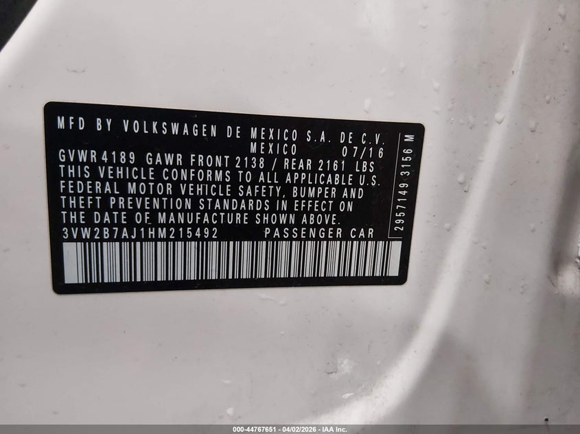 • 3VW2B7AJ1HM215492