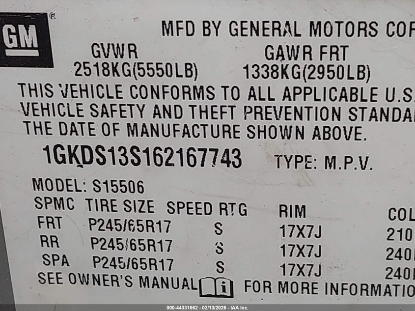 • 1GKDS13S162167743