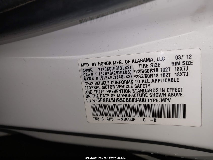 • 5FNRL5H95CB083400