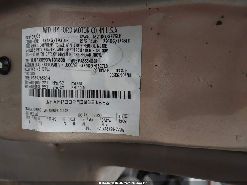 • 1FAFP33P93W131838