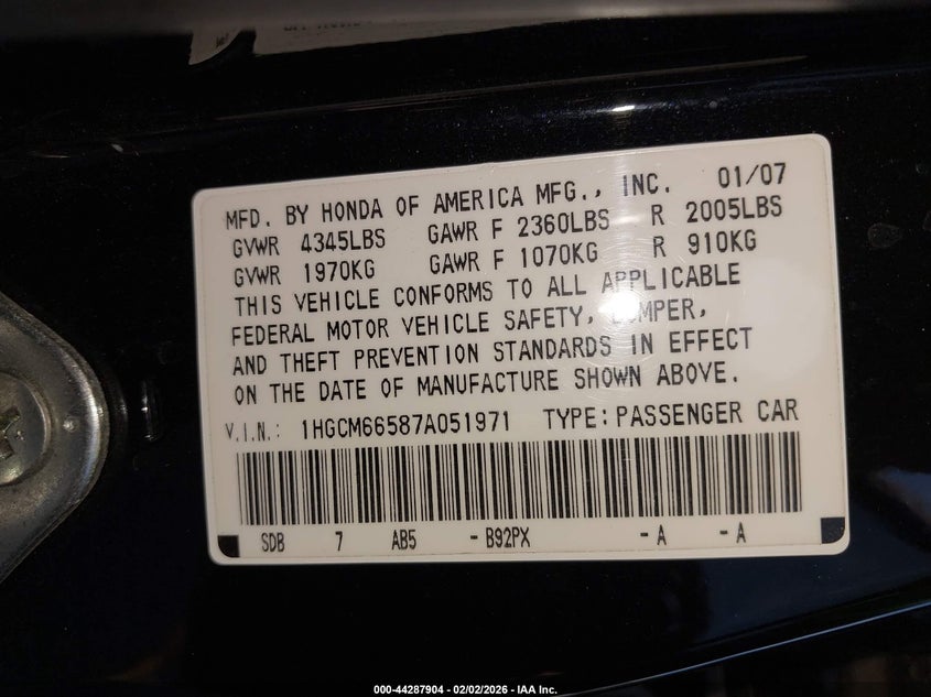 • 1HGCM66587A051971