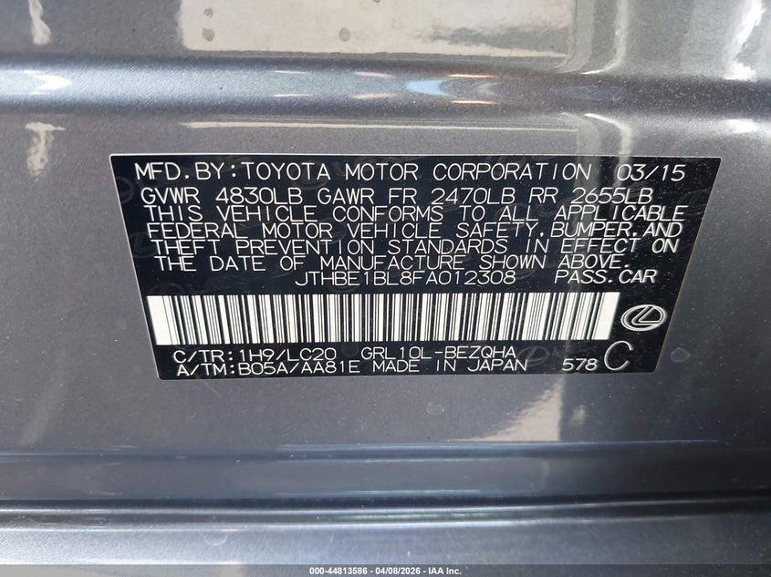 • JTHBE1BL8FA012308